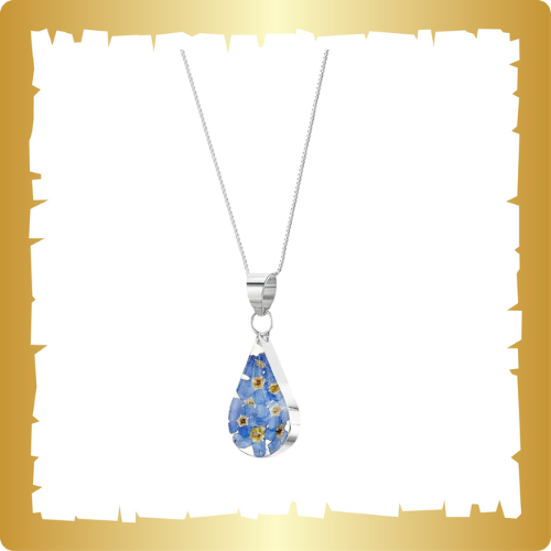 Forget-Me-Not Necklace – Silver Teardrop Pendant with Real Forget-Me-Nots