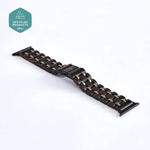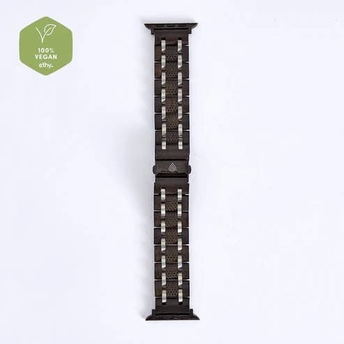 Handmade from recycled natural wood furniture, this Apple Watch strap features a deep colour palette of reds, browns and black suited for any occasion. Reinforced black metal links surround the natural red sandalwood for added durability, while a hidden clasp keeps the design sleek and uninterrupted. Crafted from sustainable, vegan materials and delivered in environmentally friendly packaging.